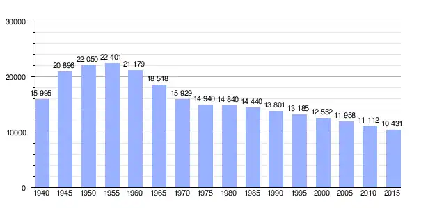 | Gráfica de evolución demográfica de Nagashima entre 1940 y 2015 |