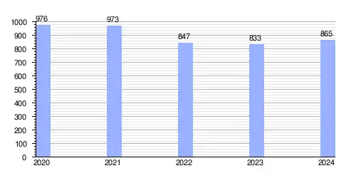 | Gráfica de evolución demográfica de Nagybarca entre 2020 y 2024 |