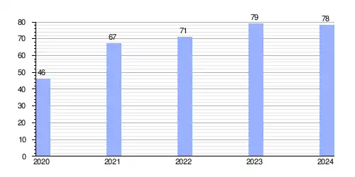 | Gráfica de evolución demográfica de Nagyhuta entre 2020 y 2024 |