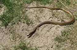 La cobra del Cabo (Naja nivea) es un reptil, del orden Squamata (o reptiles con el cuerpo cubierto de escamas) y la familia de los elápidos, propio de las regiones australes del continente africano.