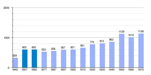 | Gráfica de evolución demográfica de Nanclares de la Oca[10] entre 1842 y 1970 |