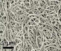 - ↑ Behabtu, N., Young, C.C., Tsentalovich, D.E., Kleinerman, O., Wang, X., Ma, A.W., Bengio, E.A., der Waarbeek, R.F., de Jong, J.J., Hoogerwerf, R.E., Fairchild, S.B., Ferguson, J.B., Maruyama, B., Kono, J., Talmon, Y., Cohen, Y., Otto, M.J., Pasquali, M. (2013). «Strong, light, multifunctional fibers of carbon nanotubes with ultrahigh conductivity». Science (en inglés) 339 (6116): 182-186. Bibcode:2013Sci...339..182B. PMID 23307737. doi:10.1126/science.1228061.