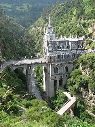 Es famoso el Santuario de Las Lajas cerca de Ipiales que recibe miles de peregrinos diariamente. Dignos de conocer son la Laguna de la Cocha, la isla de La Corota, el nevado y la laguna de Cumbal, el nudo de los Pastos, las aguas termales de Ipiales y La Cruz, la isla de Tumaco y sus hermosas Playas del Morro, Mulatos, La Ensenada y Bocagrande, el parque nacional natural de Sanquianga, los santuarios de Flora y Fauna Galeras e isla de la Corota, y 47 áreas de reserva natural en los municipios de Barbacoas, Chachaguí, Ricaurte, Pasto y Yacuanquer.[5] Anualmente se celebran en la primera semana de enero los Carnavales de Blancos y Negros y en la segunda semana de febrero los carnavales del fuego en Tumaco y los municipios de la costa del Pacífico nariñense. En el municipio de Sandoná se encuentra una de las iglesias más bellas del país cuya construcción de paredes está elaborada en piedra y su estilo es neogótico.