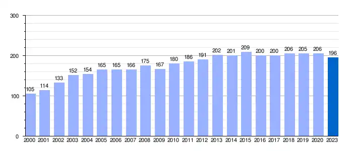 | Gráfica de evolución demográfica de Narrillos de San Leonardo entre 2000 y 2023 |