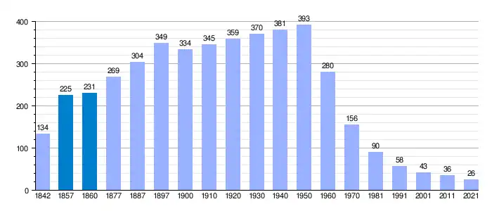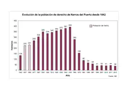 | Gráfica de evolución demográfica de Narros del Puerto[1] entre 1842 y 2021 |