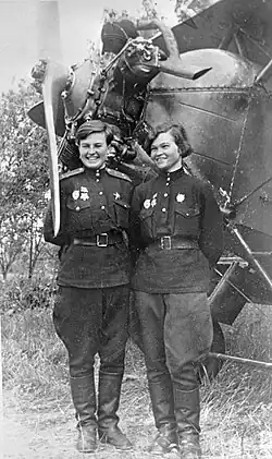 - ↑ a b Vinogradova, Luba (2016). Las brujas de la noche : en defensa de la Madre Rusia (1.ª ed edición). Pasado y Presente. ISBN 978-84-944272-9-9. OCLC 951092226. Consultado el 18 de febrero de 2021.