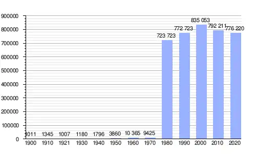 | Gráfica de evolución demográfica de Naucalpan de Juárez entre 1900 y 2020 |