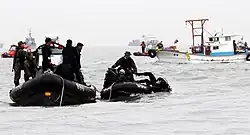 - ↑ «Fallece un buzo durante las tareas de rescate del ferry surcoreano». estrelladigital.es. 6 de mayo de 2014. Consultado el 15 de mayo de 2014.