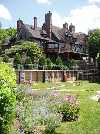 La casa se encuentra dentro de 3,2 ha de jardines en terrazas (incluidos The Rose Garden, The Afternoon Garden y The Chinese Garden) y terrenos ajardinados rodeados por 16,2 ha de bosques, praderas y pastos. Sus terrenos fueron diseñados por primera vez a fines de la década de 1880 por Nathan Barrett, luego reestructurados y ampliados entre 1926 y 1956 por el destacado diseñador paisajista Fletcher Steele. Los diseños originales de Barrett incluían dos terrazas, camas perennes (ahora el Jardín Chino) y un topiario de hoja perenne. Las adiciones de Steele incluyen Afternoon Garden (1926); posiblemente su diseño más famoso, Blue Steps (1938); y el jardín chino (1936-1955).