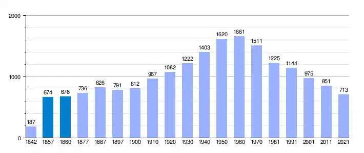| Gráfica de evolución demográfica de Nava de Arévalo[3] entre 1842 y 2021 |