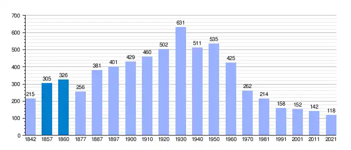 | Gráfica de evolución demográfica de Nava de Francia[4] entre 1842 y 2021 |