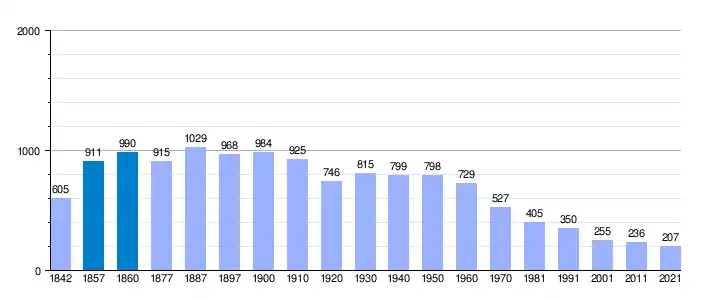 | Gráfica de evolución demográfica de Nava de Roa[6] entre 1842 y 2021 |