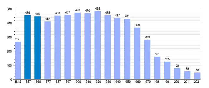 | Gráfica de evolución demográfica de Navaescurial[3] entre 1842 y 2021 |