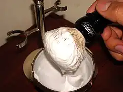 Además, una navaja de afeitar se suele usar en conjunto con una brocha y un jabón para afeitar; también hay cremas de afeitar estilo clásico para preparar con brocha. Esto se debe a la mayor lubricación y protección que ofrecen,[10][11] mejorando el deslizamiento de la navaja, aunque se pueden usar también con maquinillas.
