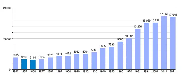 | Gráfica de evolución demográfica de Navalmoral de la Mata[10] entre 1842 y 2021 |