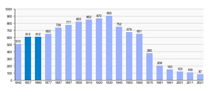 | Gráfica de evolución demográfica de Navalperal de Tormes[9] entre 1842 y 2021 |