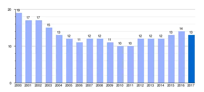 | Gráfica de evolución demográfica de Navarredonda de Salvatierra[5] entre 2000 y 2017 |