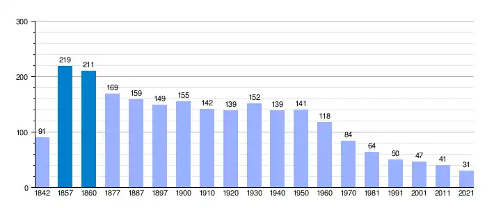 | Gráfica de evolución demográfica de Navas de Bureba[2] entre 1842 y 2021 |