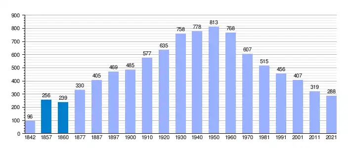| Gráfica de evolución demográfica de Navas de Estena[3] entre 1842 y 2021 |
