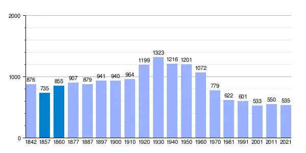 | Gráfica de evolución demográfica de Navas de Jorquera[6] entre 1842 y 2021 |