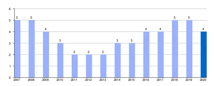 | Gráfica de evolución demográfica de Navas de Sobremonte entre 2007 y 2020 |
