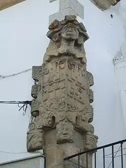 También se ven algunas viviendas blasonadas, con escudos emparentados con linajes de Brozas. En la calle Santa María, situado como umbral de una puerta, apareció un escudo del gremio de canteros, hoy desaparecido.