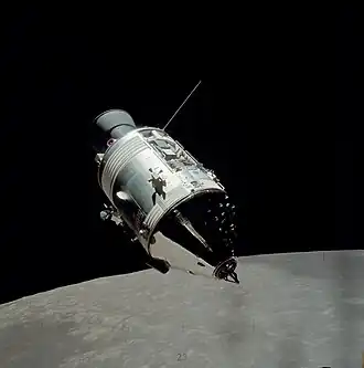 La nave Apolo fue diseñada como parte del programa Apolo, por los Estados Unidos a comienzos de la década de 1960 para enviar un hombre a la Luna antes de 1970 y traerlo de regreso sano y salvo a la Tierra. Esta meta fue dispuesta por el Presidente Kennedy tras el primer vuelo del programa espacial Mercury.[1]
