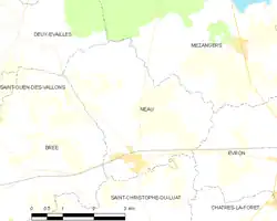 Neau es una población y comuna francesa, en la región de Países del Loira, departamento de Mayenne, en el distrito de Laval y cantón de Évron.