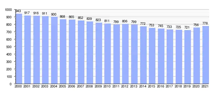 | Gráfica de evolución demográfica de Nebra entre 2000 y 2021 |