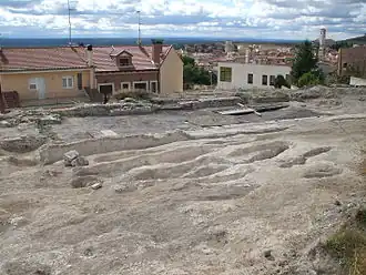- ↑ a b Bobillo de Lamo, Gonzalo. «Catálogo arqueológico. Nº Ficha Catálogo: 18» (PDF). Cuellar: Ayuntamiento de la villa de Cuellar. p. 72. Consultado el 19 de febrero de 2022.