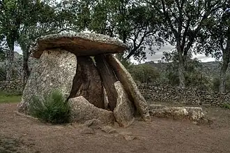 El área con mayor volumen de monumentos megalíticos se encuentra en Valencia de Alcántara, al oeste de la provincia de Cáceres. Los monumentos megalíticos más numerosos son los dólmenes; se conservan muy pocos menhires y no se ha identificado claramente ningún crómlech (Gutiérrez Ayuso, 2002).[5] Los dólmenes son de tres tipos, de cámara simple, con cámara y corredor largo o con cámara y corredor corto.