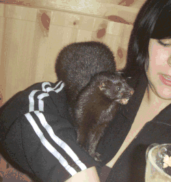 Cuando los visones salvajes están confinados con los domesticados, los salvajes dominan invariablemente a los visones domesticados. También se sabe que dominan a los gatos en los enfrentamientos. Aunque son inteligentes, los visones no aprenden rápidamente los trucos que les enseñan sus dueños. Debido a su afición por bañarse, los visones americanos cautivos pueden entrar en teteras u otros recipientes abiertos que contengan agua.