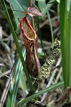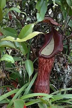 ![]() An upper pitcher of Nepenthes faizaliana del Monte Api | ||
