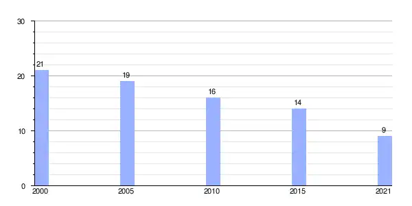 | Gráfica de evolución demográfica de Nespereira (aldea) entre 2000 y 2021 |