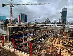 - 2019: construcción de una fábrica para suministrar hormigón a las obras, trabajos de excavación, empezaron los trabajos para la construcción de los sótanos.