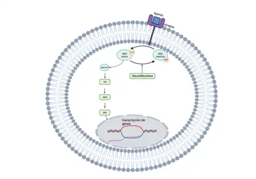 - ↑ Bergoug, Mohammed; Doudeau, Michel; Godin, Fabienne; Mosrin, Christine; Vallée, Béatrice; Bénédetti, Hélène (27 de octubre de 2020). «Neurofibromin Structure, Functions and Regulation». Cells 9 (11): 2365. ISSN 2073-4409. PMC 7692384. PMID 33121128. doi:10.3390/cells9112365. Consultado el 12 de octubre de 2022.