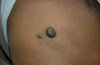 - ↑ A. Osioa; M. Battistella: Le nævus bleu et ses variantes. Blue naevi and variants. Annales de Dermatologie et de Vénéréologie, Volume 139, Issue 10, October 2012, Pages 677–680