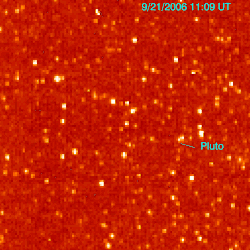 Las primeras imágenes de Plutón hechas por la sonda fueron tomadas entre el 21 y 24 de septiembre de 2016, para probar el instrumento de Reconocimiento de Imágenes de Largo Alcance (LORRI) y fueron dadas a conocer por la NASA en noviembre de 2016.[16] Fueron tomadas a una distancia de 4 200 millones de kilómetros de distancia; con esto quedó probado con éxito la habilidad de la sonda para rastrear objetos a una gran distancia.