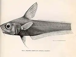 - ↑ Cohen, D.M., T. Inada, T. Iwamoto y N. Scialabba 1990. FAO species catalogue. Vol. 10. Gadiform fishes of the world (Order Gadiformes). An annotated and illustrated catalogue of cods, hakes, grenadiers and other gadiform fishes known to date. FAO Fish. Synop. 10 (125). 442 p.