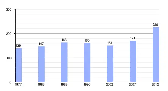 | Gráfica de evolución demográfica de Niau entre 1977 y 2012 |
