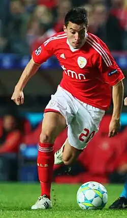 Nicolás Gaitán jugando un partido en su etapa con el Benfica.