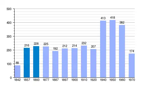 Gráfica de evolución demográfica de Nidáguila[1]​ entre 1842 y 1970