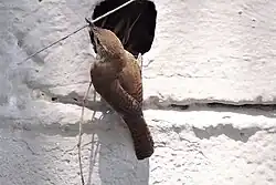 Muchas aves anidan cerca de las construcciones humanas y algunas han sido especialmente estimuladas a hacerlo. Las cigüeñas blancas anidantes han sido protegidas y reverenciadas en muchas culturas.[63] A menudo se usan cajas de anidación para estimular a las aves anidantes en cavidades. La anidación del halcón peregrino en altos edificios ha atrapado el interés popular.[64] Las aves criadoras en colonias producen guano que es un fertilizante valioso. Los nidos de saliva de salanganas son usados para hacer sopa de nido de aves en lugares del sudeste de Asia.
