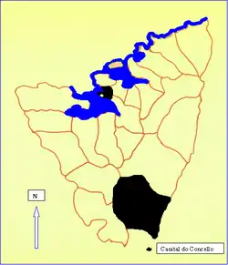 - ↑ Miralbes Bedera, Rosario; de Torres Luna, María Pilar; Rodríguez Martínez-Conde, Rafael (1979). «Ortigueira». Mapa de límites de las parroquias de Galicia. Santiago de Compostela: Imprenta Paredes. p. 19. ISBN 8460014142.