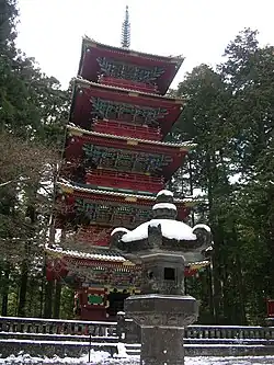 La pagoda de Tōshōgū fue construida en 1650 y reconstruida en 1818 tras un incendio. Sus cinco niveles representan, de manera ascendente, a la tierra, el agua, el fuego, el viento y al cielo. | ||
