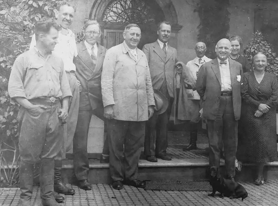 En 1937, Nikolái Vavílov (quinto, de izquierda a derecha) visitó al genetista vegetal alemán Dr. Alberto Boerger (cuarto, de izquierda a derecha), director del Instituto Fitotécnico y Semillero Nacional (en la ciudad uruguaya de La Estanzuela), donde se había logrado duplicar la producción de trigo mediante el mejoramiento genético, con un gran impacto económico en Argentina, Uruguay y sur de Brasil.