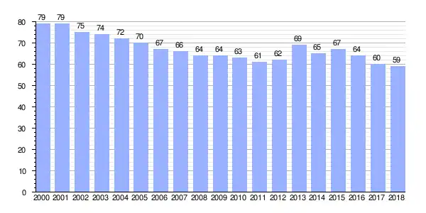 | Gráfica de evolución demográfica de Nináns entre 2000 y 2018 |