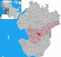 Se encuentra ubicado en el área centro-este del estado, cerca de las ciudades independientes de Schleswig y Kiel, de la costa del mar Báltico y del canal de Kiel.