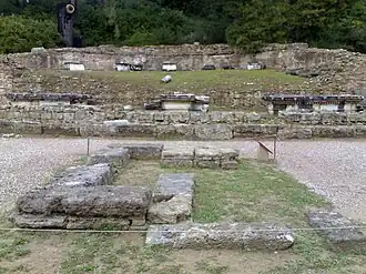 - ↑ a b c Mee, Christopher; Spawforth, Anthony (2001). Grecia: guía arqueológica. Madrid: Acento. p. 293. ISBN 84-483-0635-X.