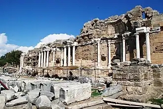 - ↑ a b «The aqueduct and nymphaion of Side». Turkish Archaeological News (en inglés). Consultado el 21 de septiembre de 2024.